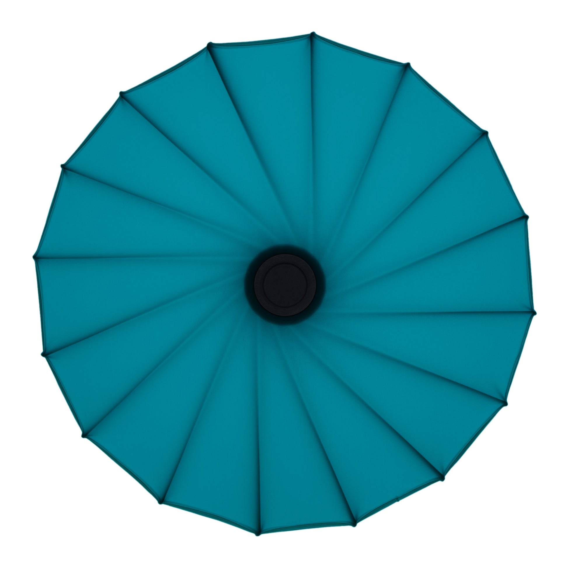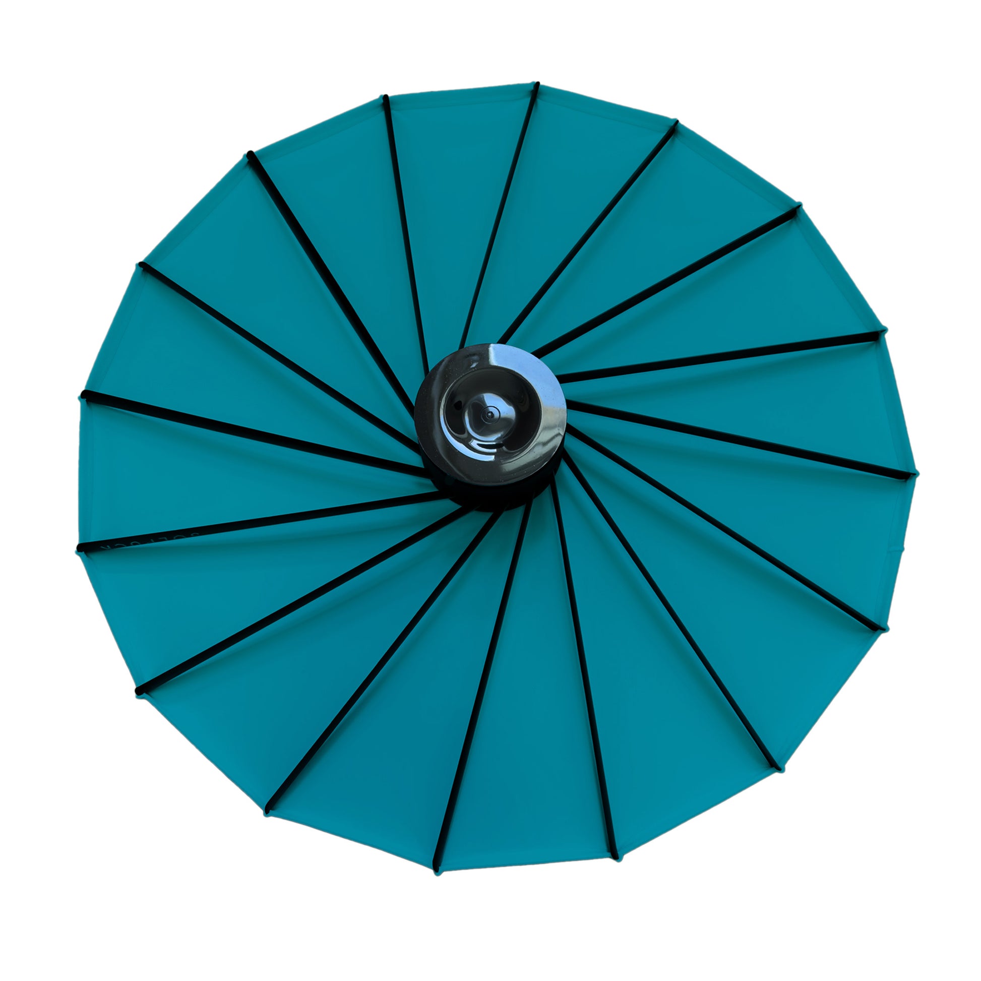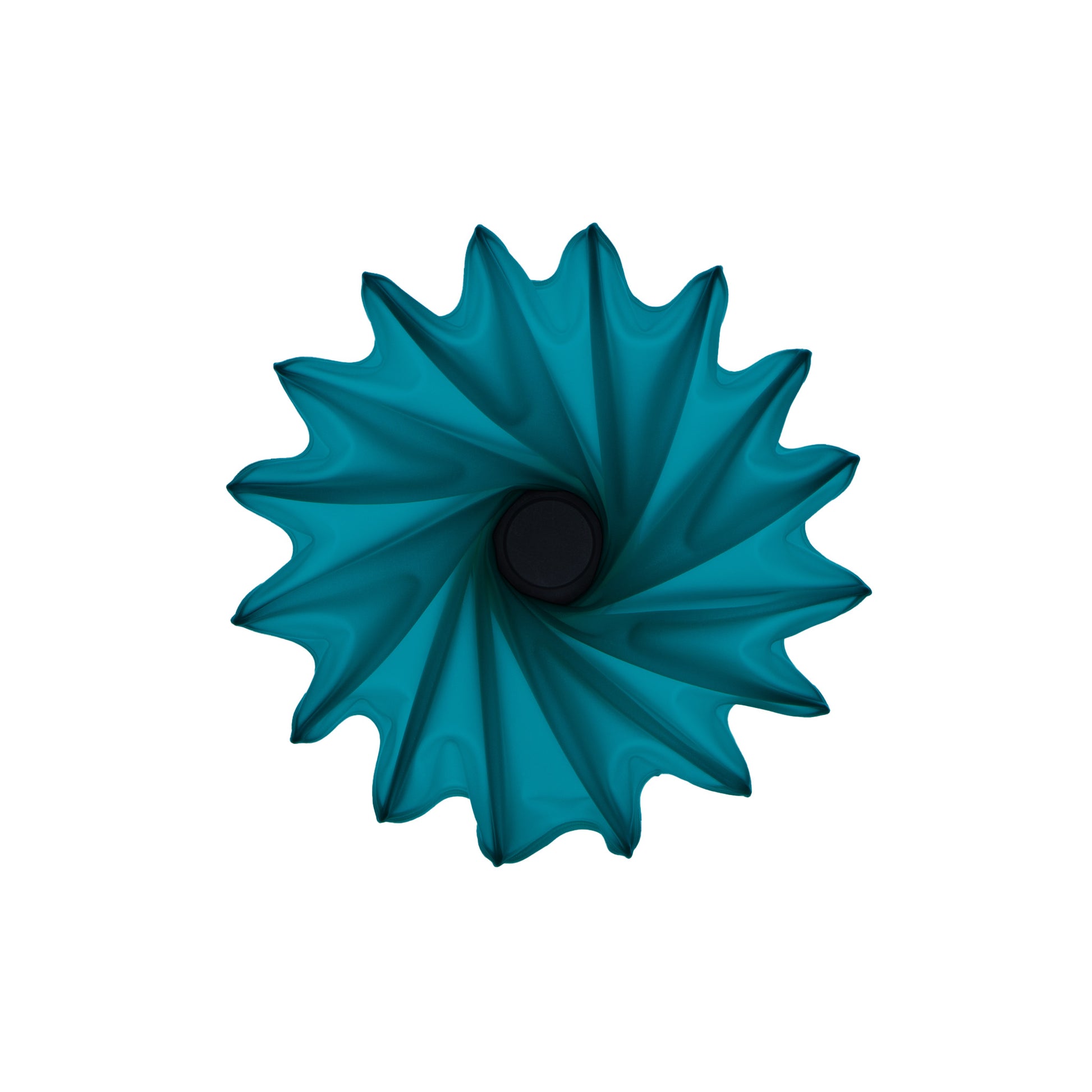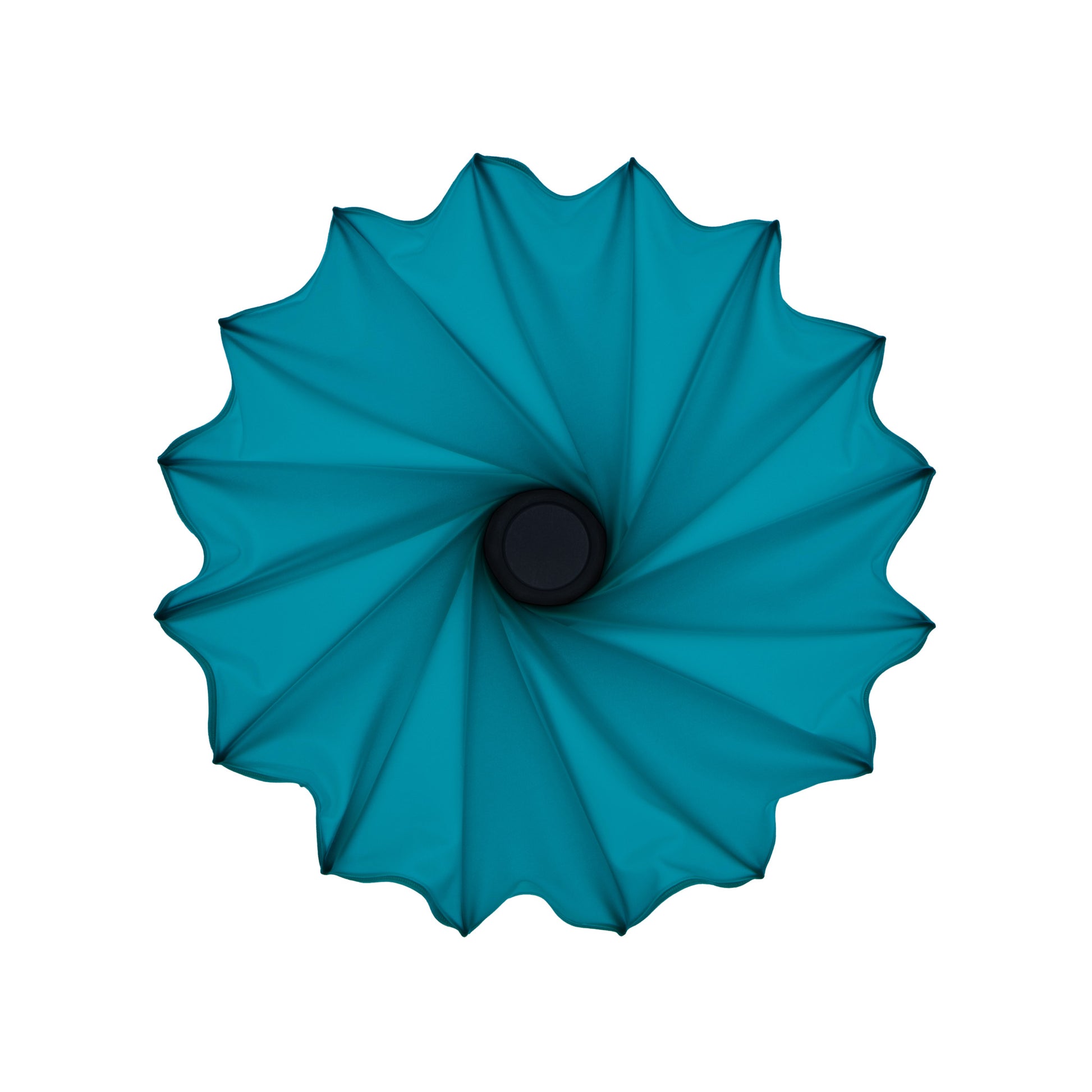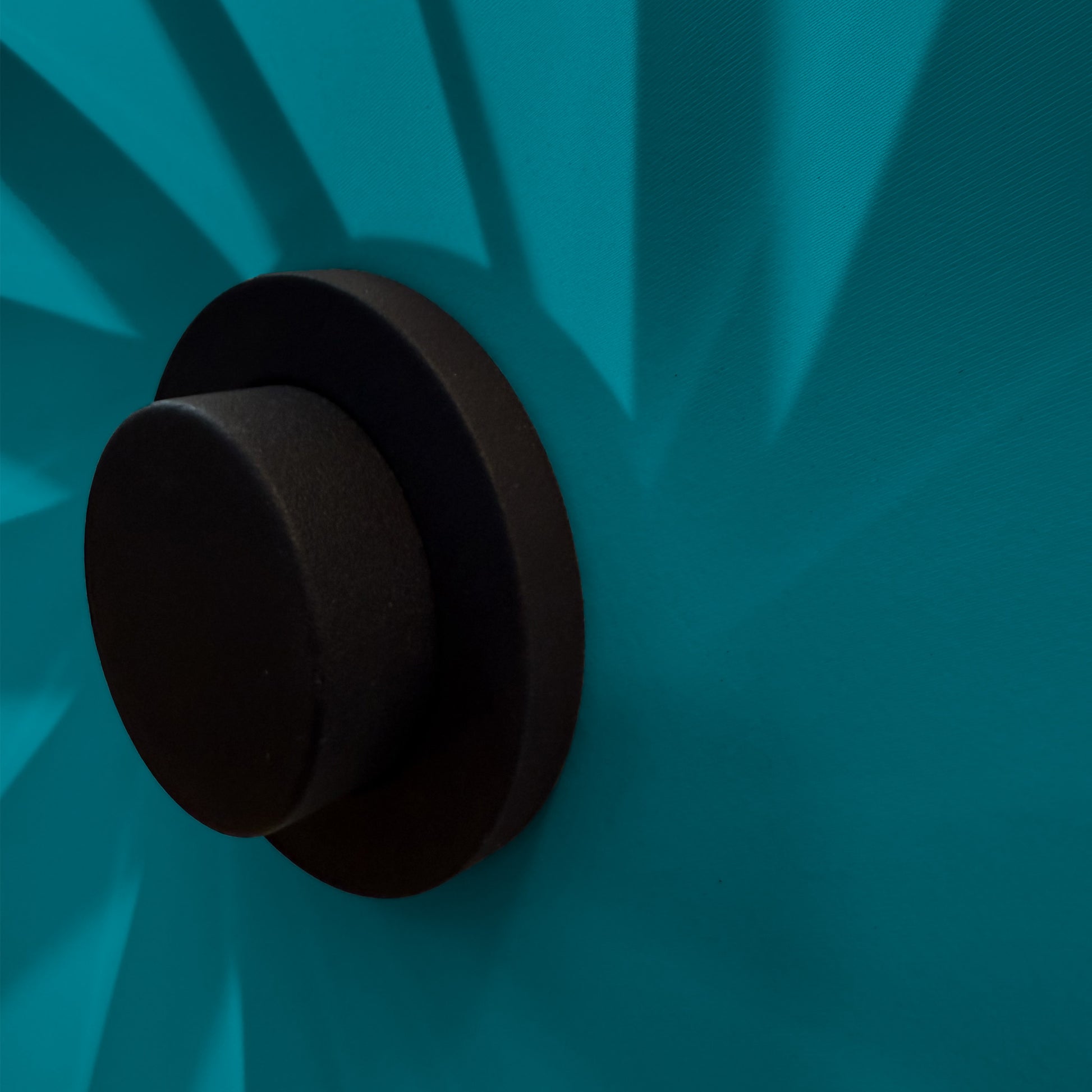 Solpuckens tyg av återvunnen högelastiskt ECONYL® polyamid blockerar störande solstrålar, utan att skymma ljus eller utsikt. Storleken justeras enkelt genom att de valsade fjäderstålbanden och tyget smidigt vrids in kring Solpuckens centrum. Med ett lätt klick kan den flyttas omkring.