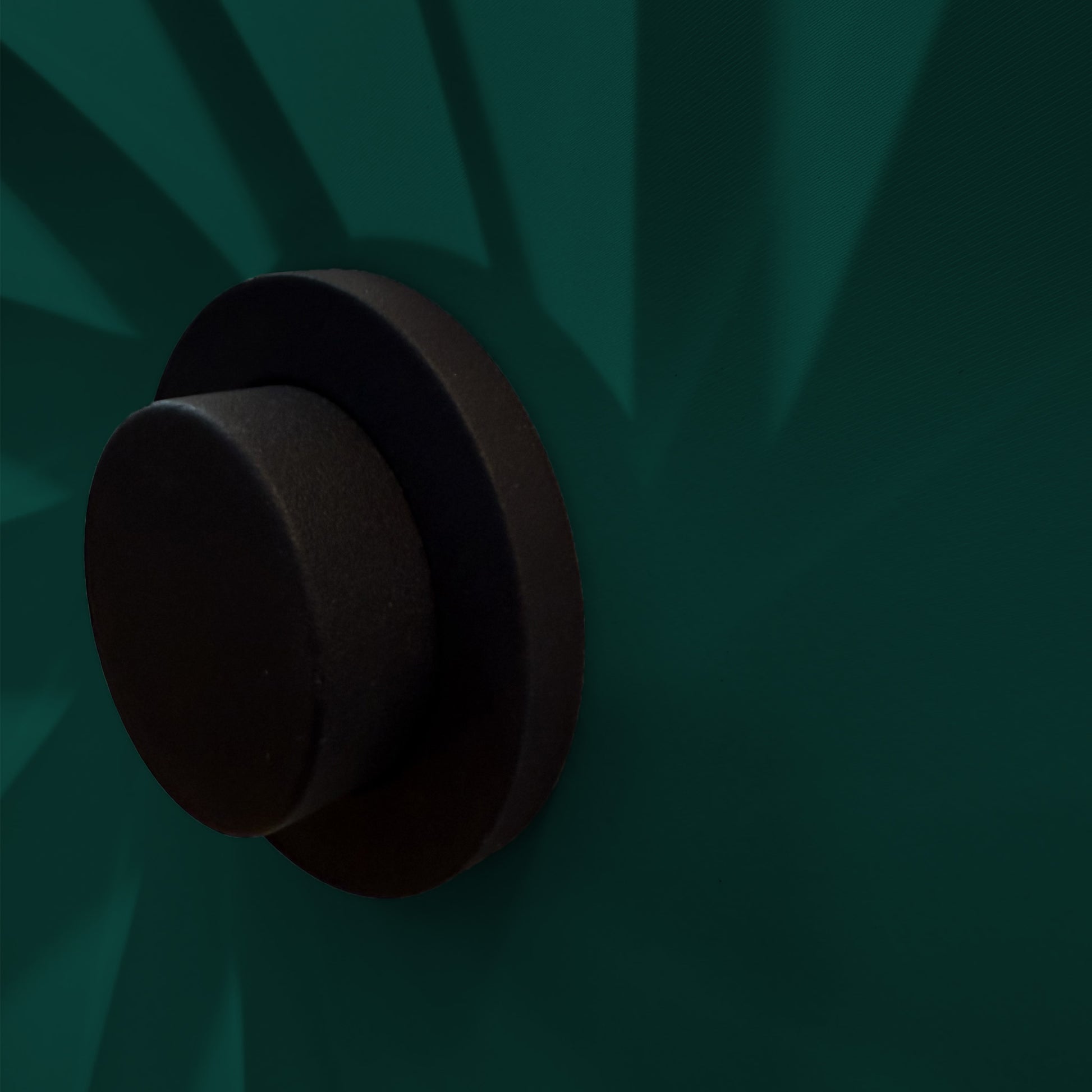 Solpuckens tyg av återvunnen högelastiskt ECONYL® polyamid blockerar störande solstrålar, utan att skymma ljus eller utsikt. Storleken justeras enkelt genom att de valsade fjäderstålbanden och tyget smidigt vrids in kring Solpuckens centrum. Med ett lätt klick kan den flyttas omkring.