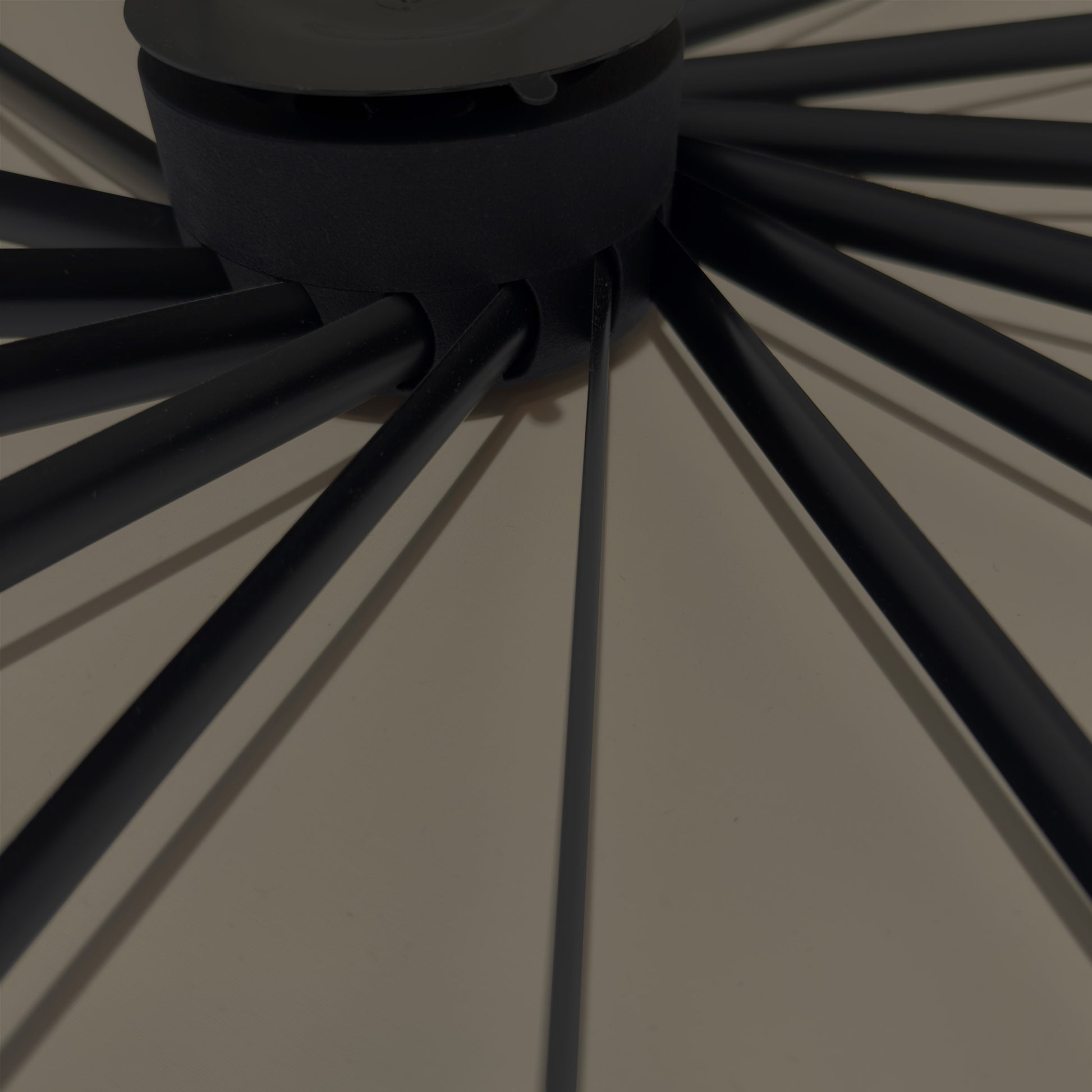 Solpuckens tyg av återvunnen högelastiskt ECONYL® polyamid blockerar störande solstrålar, utan att skymma ljus eller utsikt. Storleken justeras enkelt genom att de valsade fjäderstålbanden och tyget smidigt vrids in kring Solpuckens centrum. Med ett lätt klick kan den flyttas omkring.