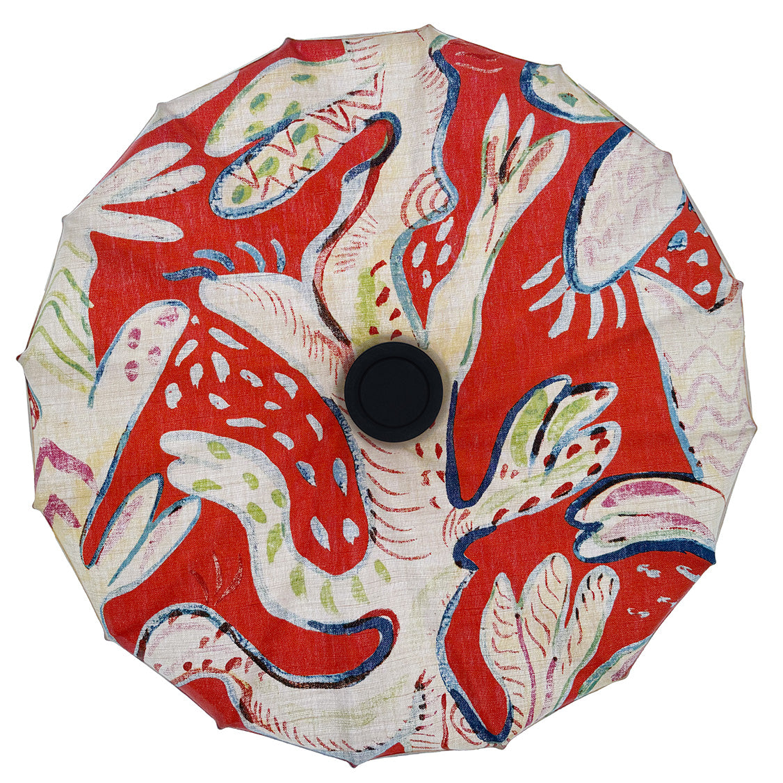 Solpuck Korall är vår mest exklusiva och känslomättade modell hittills. Varje Solpuck är klädd i kraftigt vintage bomull/lin-textil designat av Ulrica Hydman-Vallien, tryckt 1994 för Kinnasand. Det är ett stycke äkta svenskt textilarv som nu får nytt liv i ett helt nytt sammanhang.